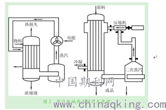 結晶器的閃蒸罐通過循環管連接1臺管殼式換熱器,罐內濃鹽水由循環泵送至換熱器進行加熱,然后返回閃蒸罐,發生閃蒸。在加熱和閃蒸過程中,水蒸發出來,濃鹽水變成過飽和狀態,鹽分析出,逐漸在閃蒸罐內形成混鹽晶體。部分濃鹽水從循環管道上排至離心機進行液固分離,離心母液返回結晶器,固體廢物進行填埋處置。對于利用蒸汽作為熱能的多效蒸發技術,蒸發1kg水需要熱能2.32MJ,而采用機械壓縮蒸發技術時,蒸發1kg水僅需0.12MJ或更少的熱能,即單一的機械壓縮蒸發器的效率,理論上相當于20效的多效蒸發系統。當增加多效蒸發器的效數時,雖然可以提高效率,但增加了設備的投資和操作的復雜性。MVR工藝只在首次啟動時需要外源蒸汽,正常運轉后,僅需提供驅動蒸發器內廢水、蒸汽、冷凝水循環和流動的水泵、蒸汽壓縮機和控制系統所需要的電能,而廢水蒸發所需的熱能主要由蒸汽冷凝時釋放的熱能來提供。該技術雖然能夠實現脫硫廢水的零排放,但也存在不足之處,如系統較復雜、投資運行成本高、占地面積大等。